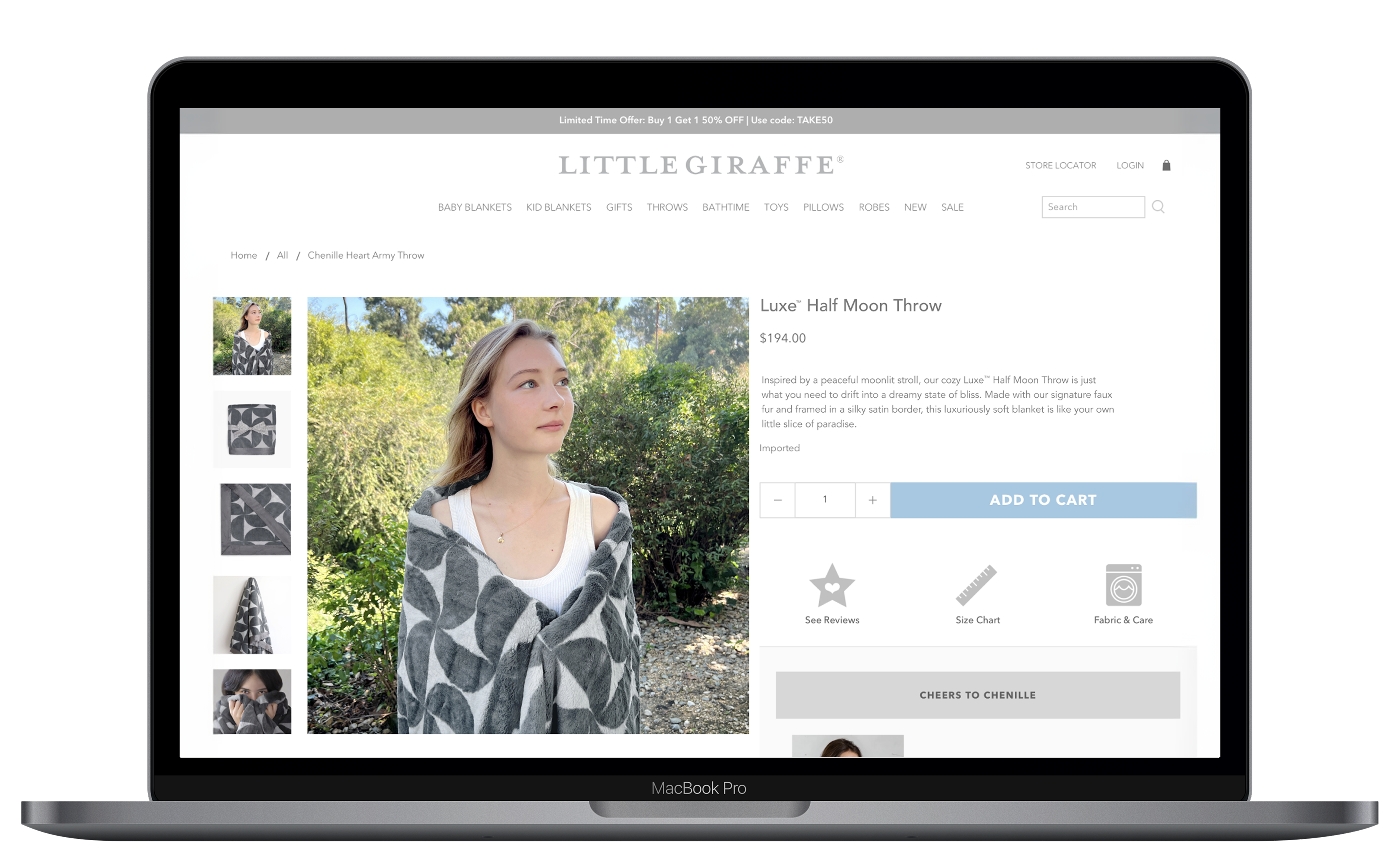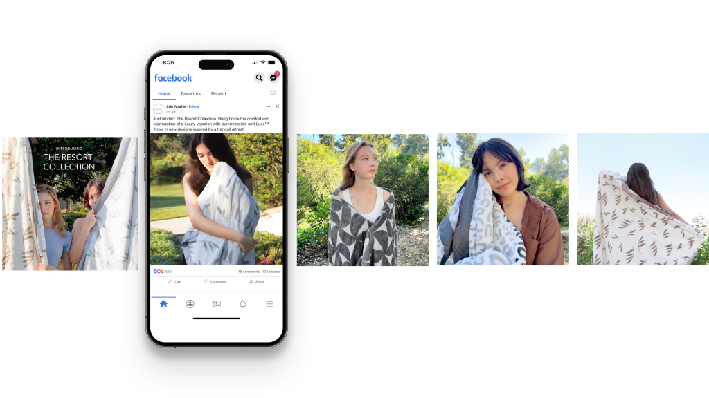 Three new designs of Little Giraffe’s bestselling Luxe™ Throw were developed independently with no unifying narrative, but they needed to launch together as a cohesive collection. The challenge was twofold: finding a story that could authentically connect them, and positioning it in a way that would convince parents—who’d been buying Luxe blankets for their kids for years—to finally get one for themselves. That’s how “The Resort Collection” came to life, a concept built around the idea that you don’t have to book a flight to feel like you’ve escaped. These throws became an invitation to slow down, recharge, and find a little luxury without ever leaving home. The storytelling framework gave the designs a shared identity and aspirational context, making the launch feel intentional and curated rather than coincidental.
